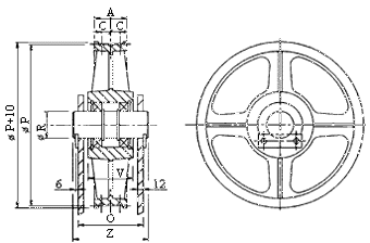 Öntöttvas terelőtárcsa golyóscsapággyal.
